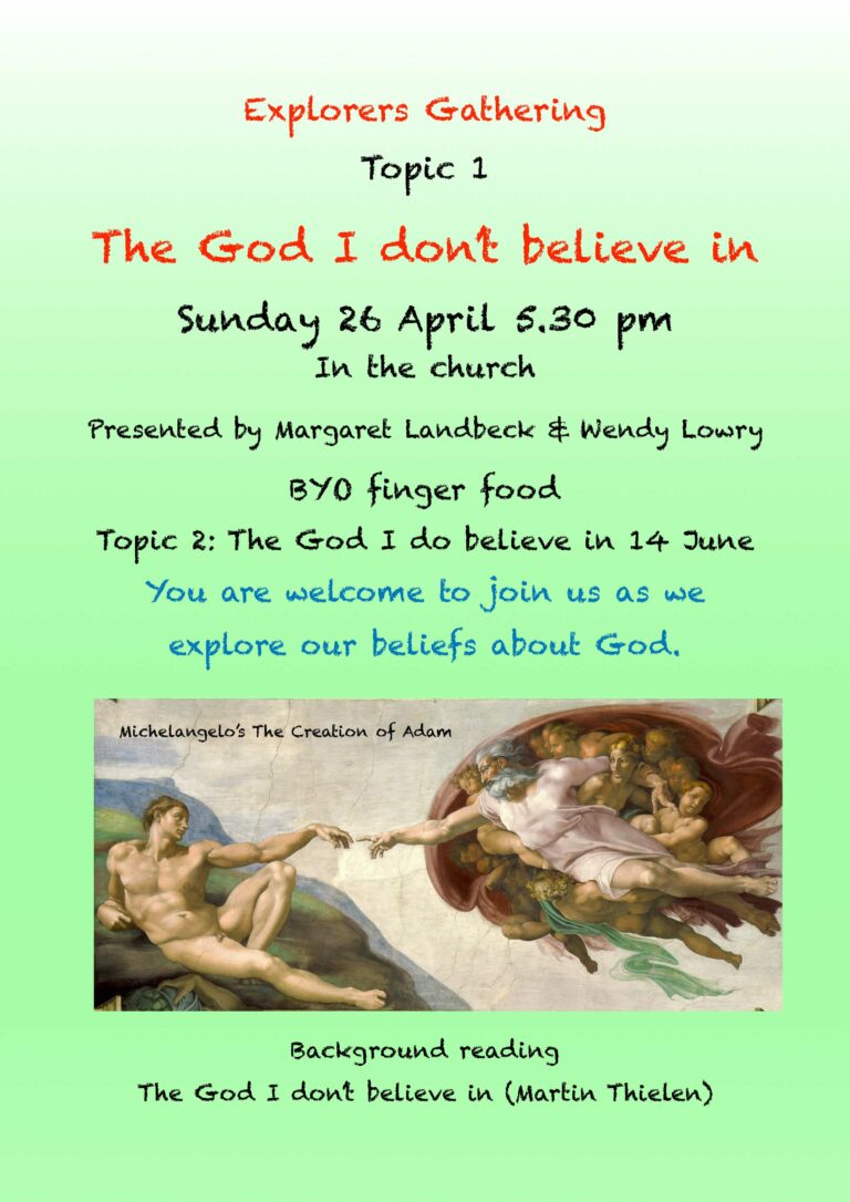 Our theme for 2026 is It’s hard to be a Christian these days! We are planning to have four Sunday evening Gatherings based on Martin Thielen’s book My long farewell to traditional religion and what remains. This book is available as a free PDF download on Thielen’s website Doubters Parish